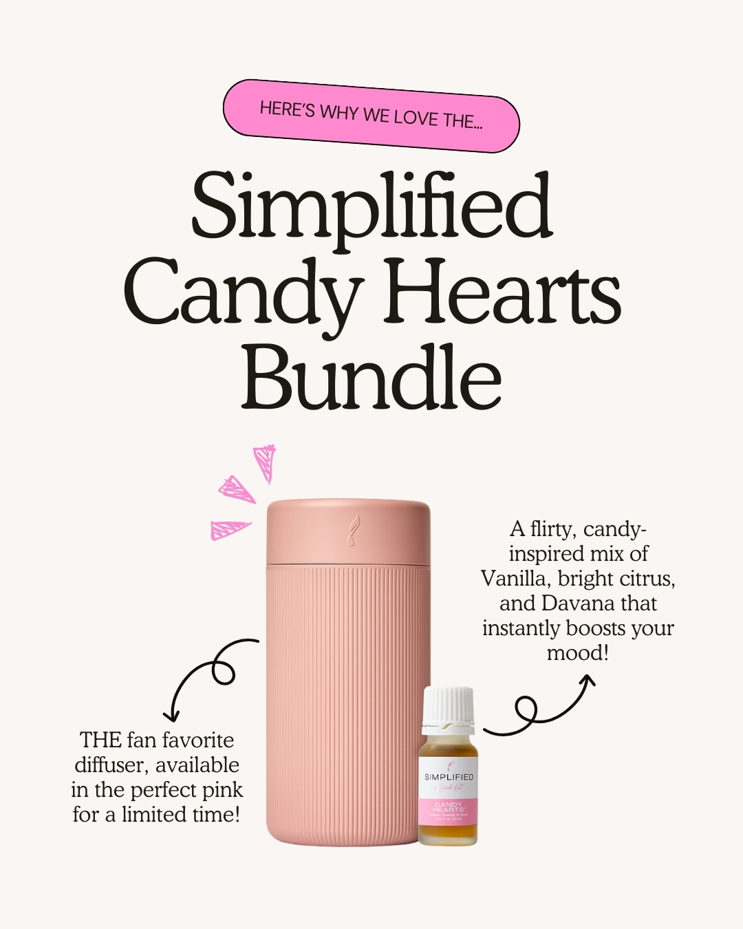 - Candy Hearts blend - a flirty, candy-inspired mix of Vanilla, bright citrus, and Davana that instantly boosts your mood!