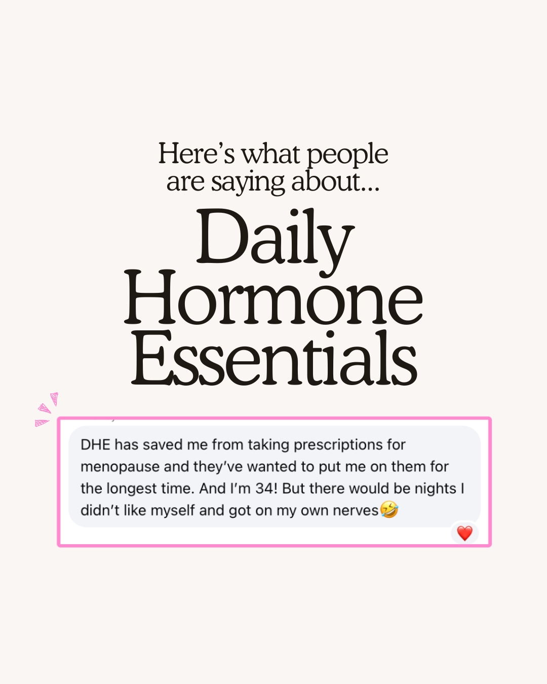 “DHE has saved me from taking prescriptions for menopause and they've wanted to put me on them for the longest time. And I'm 34! But there would be nights I didn't like myself and got on my own nerves."